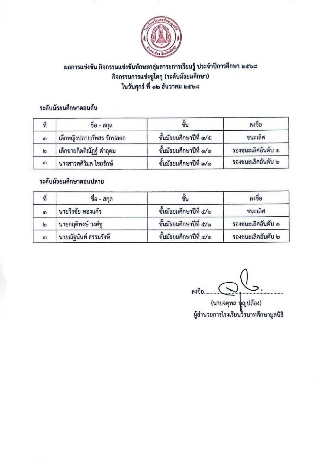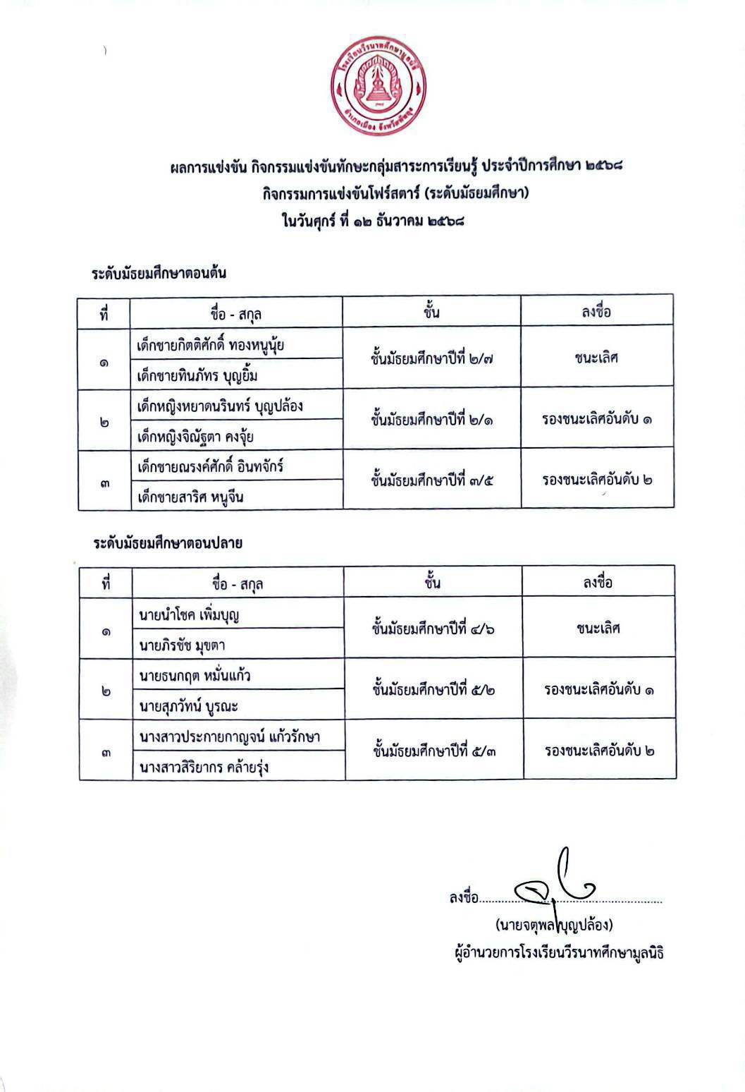 รองผู้อำนวยการโรงเรียนวีรนาทศึกษามูลนิธิ |