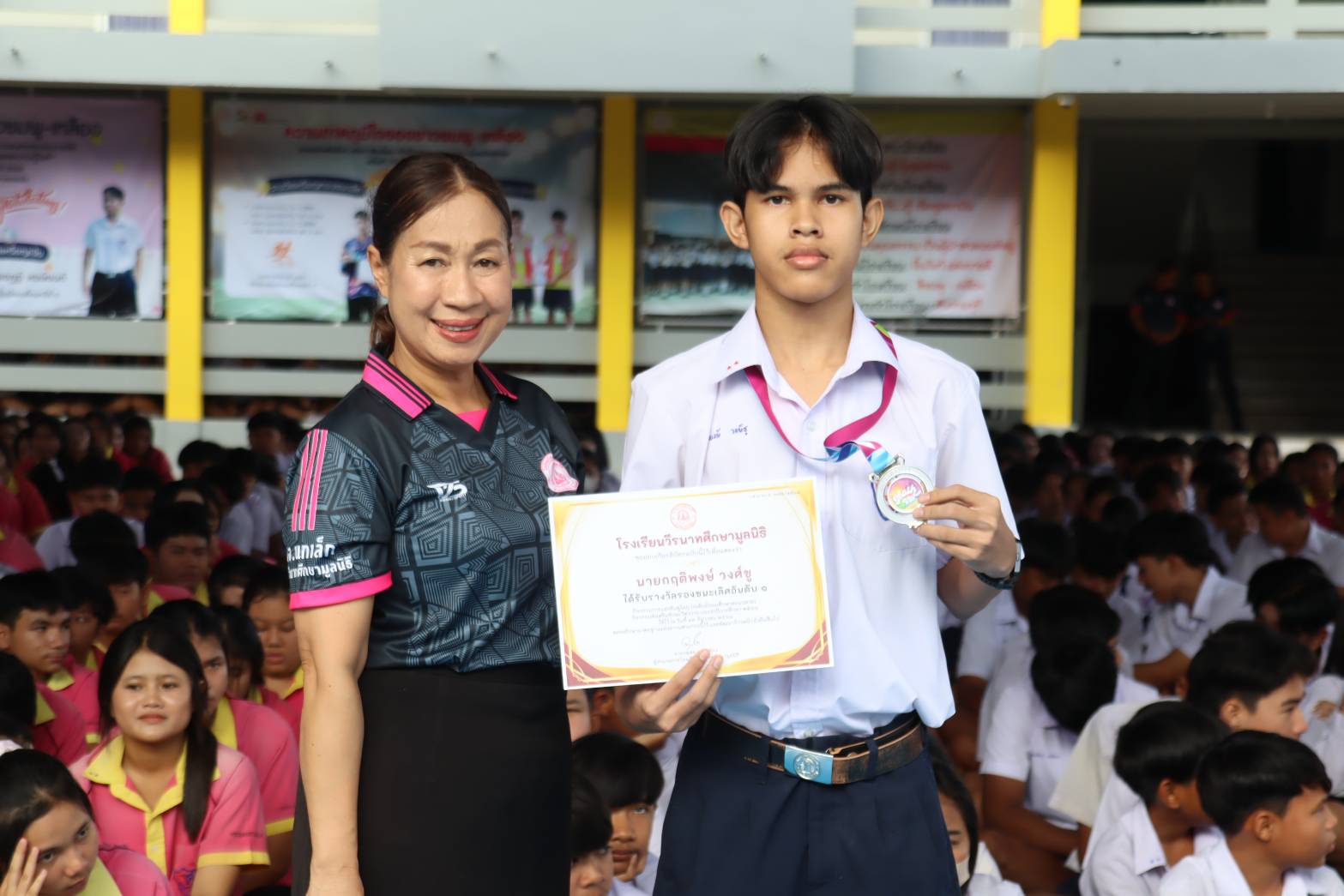 พิธีมอบเกียรติบัตรให้กับนักเรียนที่เข้าร่วมการแข่งขันทักษะกลุ่มสาระการเรียนรู้คณิตศาสตร์