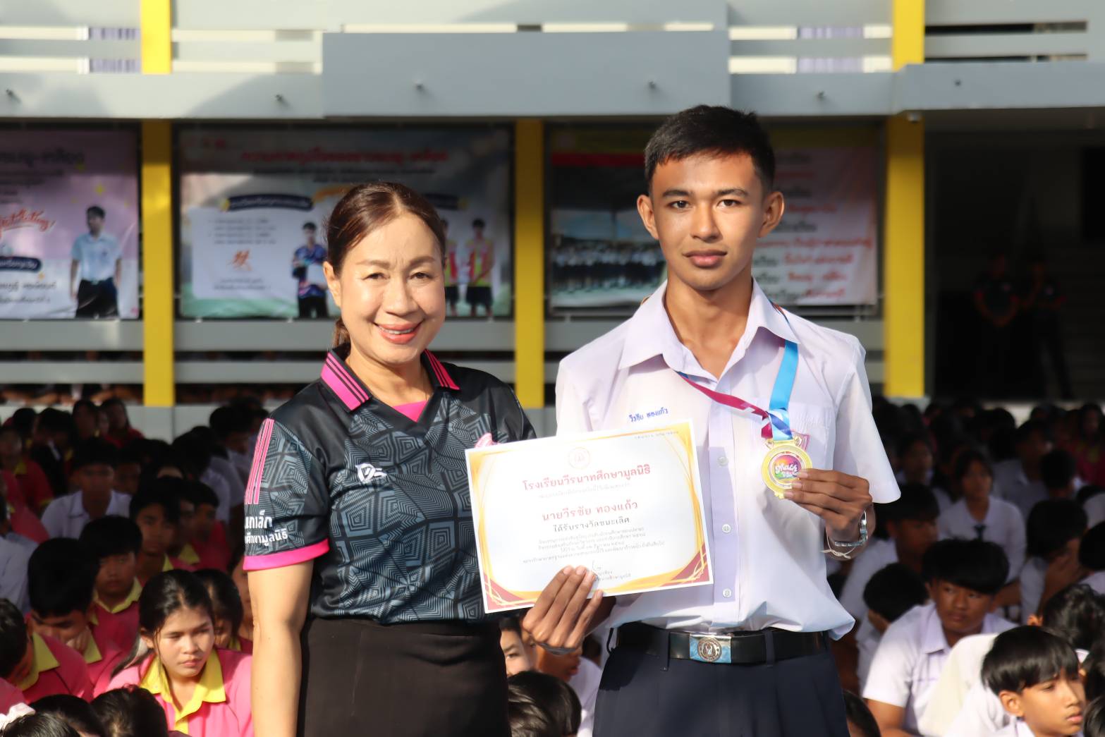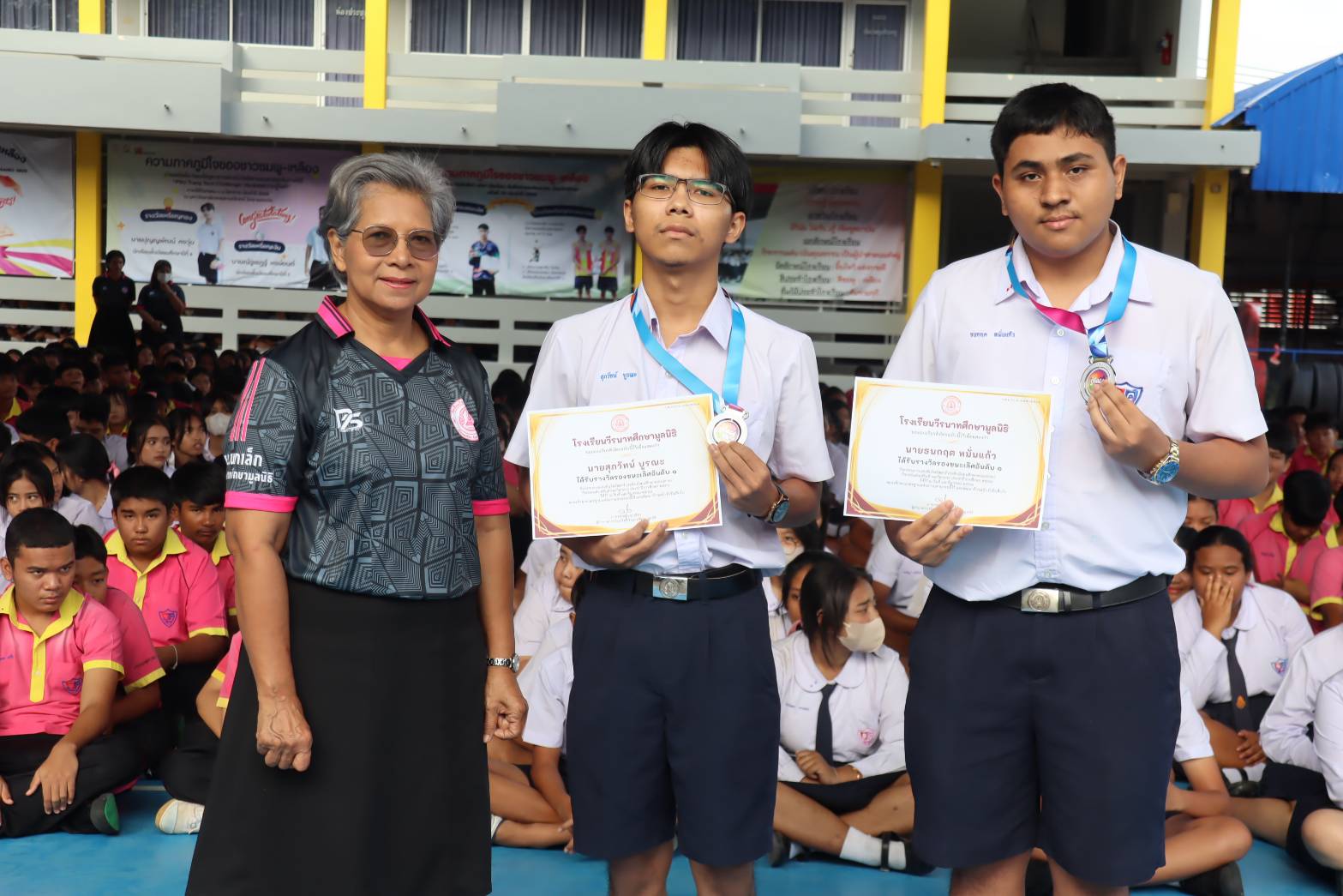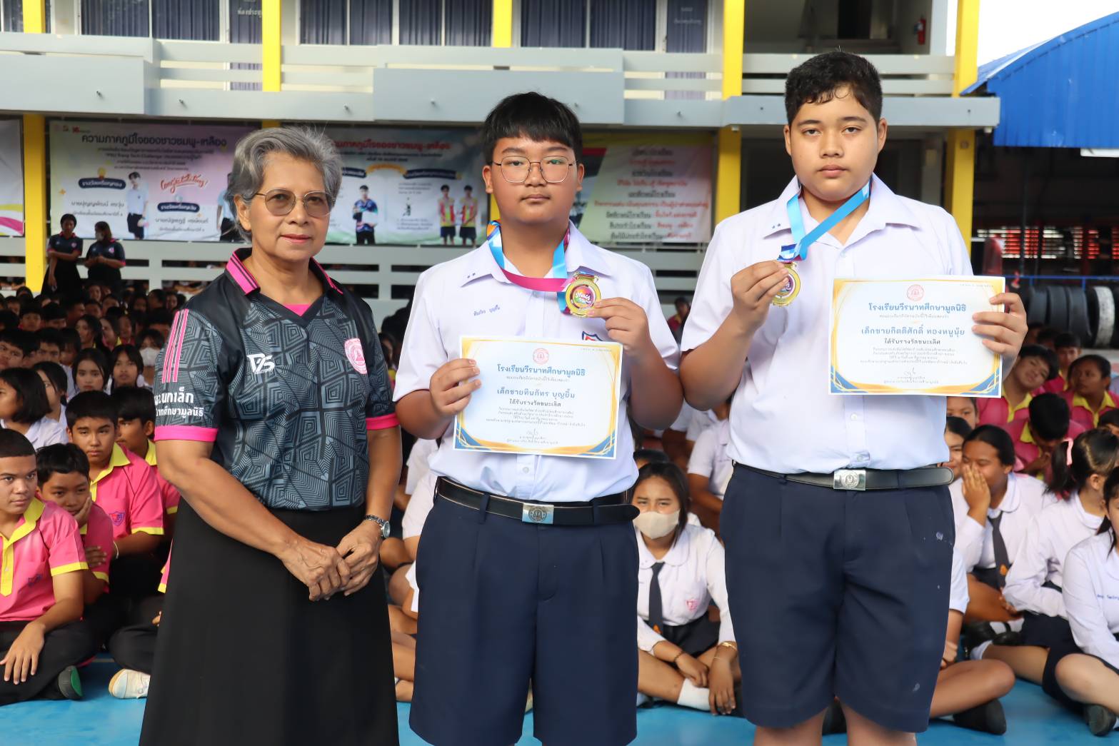 บรรยากาศพิธีมอบเกียรติบัตรให้กับนักเรียนที่เข้าร่วมการแข่งขันทักษะกลุ่มสาระการเรียนรู้คณิตศาสตร์