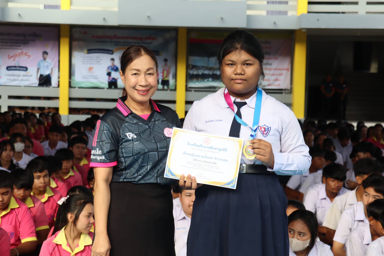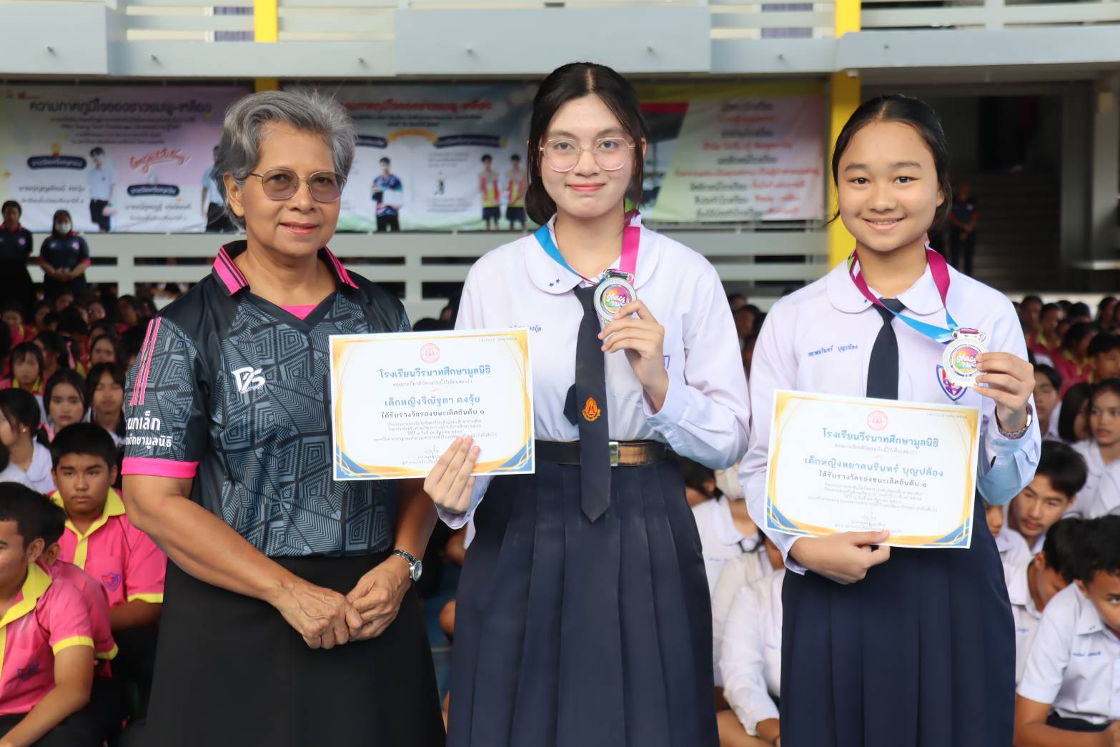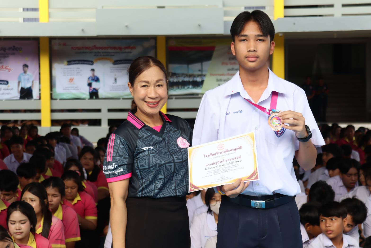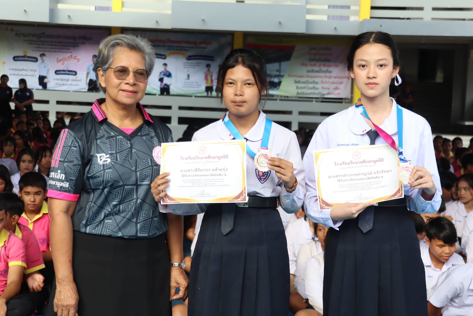 บรรยากาศพิธีมอบเกียรติบัตรให้กับนักเรียนที่เข้าร่วมการแข่งขันทักษะกลุ่มสาระการเรียนรู้คณิตศาสตร์