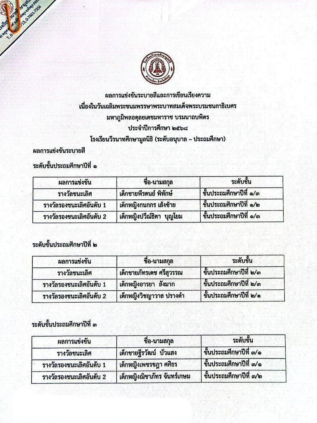 ดำเนินการมอบเกียรติบัตรให้กับนักเรียน ”เนื่องในกิจกรรมวันเฉลิมพระชนมพรรษาพระบาทสมเด็จพระบรมชนกาธิเบศร มหาภูมิพลอดุลยเดชมหาราช บรมนาถบพิตร “วันพ่อแห่งชาติ” ประจำปีการศึกษา ๒๕๖๘