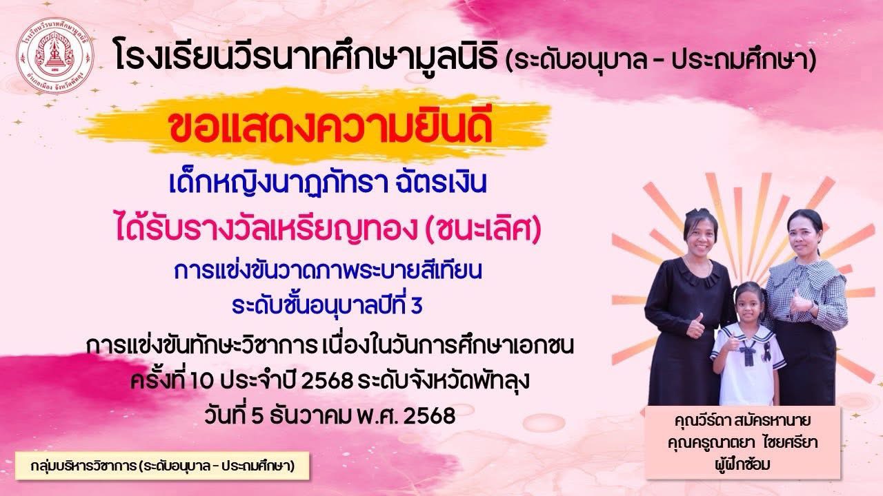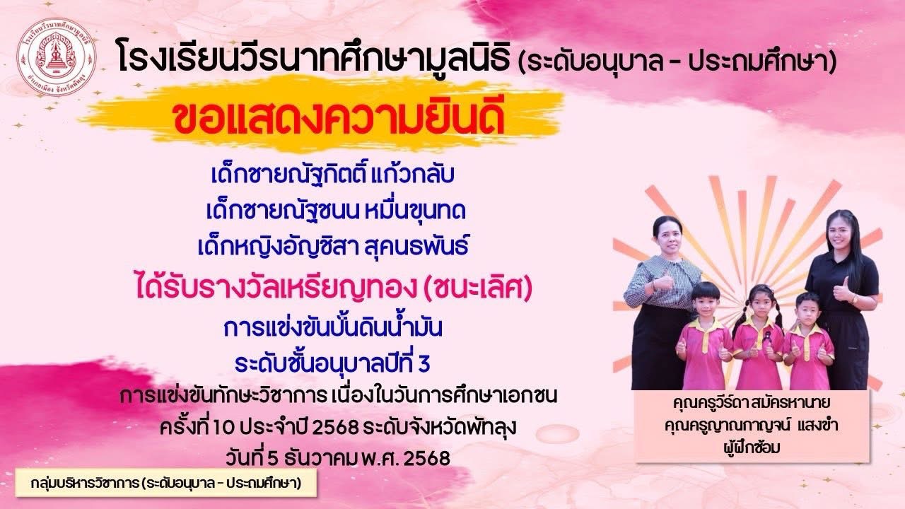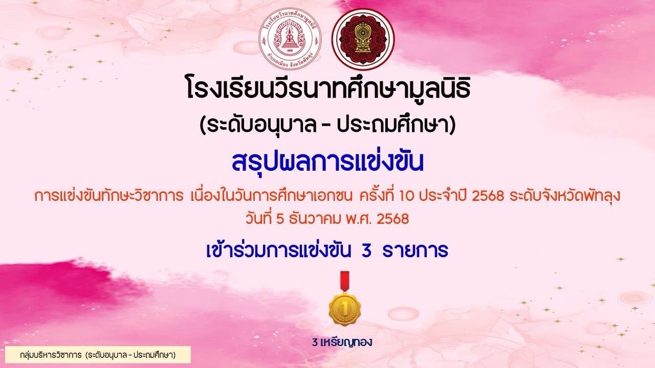 สรุปผลการแข่งขันทักษะวิชาการ เนื่องในวันการศึกษาเอกชน ครั้งที่ ๑๐ ประจำปีการศึกษา ๒๕๖๘ ระดับจังหวัดพัทลุง #ตัวแทนการแข่งขันทักษะวิชาการระดับภาคใต้